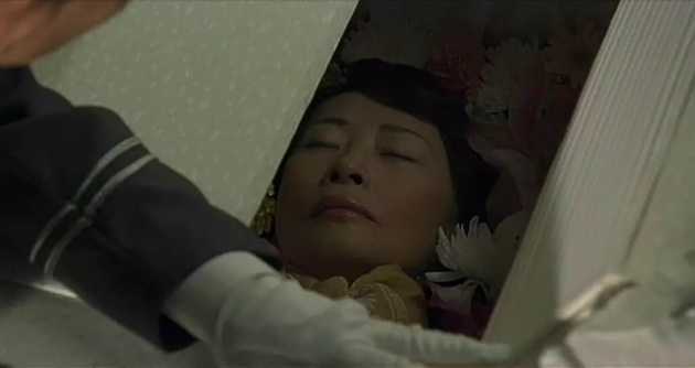 Despite the subject matter, Departures is not a dour film, far from it. In fact, upon watching again, I was surprised to find the film rather funny. From Daigo wearing a giant diaper to film an instructional video, to live octopus antics in the kitchen, Departures injects an appropriate degree of levity, but not in a way to break the mood. Even during the opening scene, Daigo discovers the deceased person in question was actually a gender dysphoric male once he discovers she has “a thing”, leading to a funny exchange between Daigo and his boss (but not in a way which feels inappropriate or out of place). This levity also extends to the film’s montage, in which the complete spectrum of people dealing with grief is displayed. One funeral sees a family laughing with tears of joy and leaving lipstick marks on the face of their deceased patriarch, while another family happily proclaims “bye-bye” and “thank you for everything” to their grandmother while she wears her favourite socks (really putting the fun in funeral). On the other end of the spectrum, the POV shot from the deceased Christian boy as the lid is slid over the coffin into darkness gives me goosebumps. Likewise, the emphasis of the cello in the film’s narrative not only ties in with the Japanese love of European classical music but also influences the music score. Composer Joe Hisaishi emphasises the use of cellos in his score of which he described the challenge of centring a score around the cello as one of the most difficult things he had ever done.