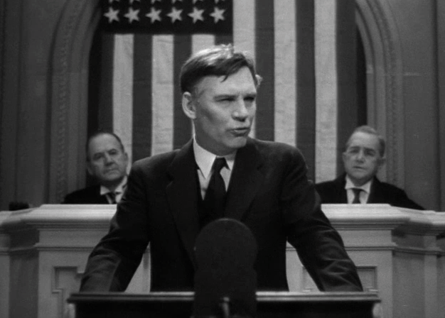 The newly elected President of the United States, Judson Hammond (Walter Huston), is sworn into office, yet behind closed doors, he and his inner circle treat the presidency as a joke. They engage in smarmy chatter and look down upon the populace (“When I think of all the promises I made to the people to get elected…by the time they realise you’re not going to keep them, your term will be over”). Hammond even takes the pen that Lincoln freed the slaves with and remarks, “Well, here it goes for Puerto Rican garbage”. To play up this disregard to an even greater degree, in a very unusual scene featuring a rare use of overlapping dialogue, the President and his nephew play a treasure hunt game in the Oval Office while the radio plays an activist speech. The audio from the dialogue between the President and his nephew becomes drawn out by that of the radio, as Hammond does not have a care in the world for what’s happening in the country. The only loyalty displayed by Hammond is towards what is simply referred to as “The Party” (“The party has a plan, I am just a member of the party”). Walter Huston has the look you would expect from a president from the early 20th century (not too dissimilar looking to Warren G. Harding or a clean-shaven William Howard Taft), while his sheer gravitas not only makes the hairs on your skin stand up, but he also prevents Hammond from coming off as just a caricature. Interestingly, however, he is a President without a First Lady, which would make him and James Buchanan the only unmarried presidents.