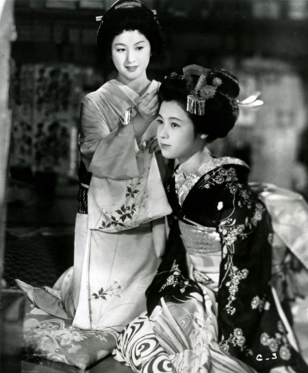 Considered a loose remake of Mizoguchi’s earlier film Sisters Of The Gion, both chronicle a pair of geishas living under the same roof and encountering difficult personal circumstances. In both films, the pair share a sister relationship (with the pair in the earlier film being actual blood sisters) in which the older geisha is more traditional and the younger less so, of whom ends up rebelling against the system. Otherwise, the stories of both films go their own way, with the two women in A Geisha struggling to refuse the sexual advances of men in order to survive. This raises the question – are geisha prostitutes or have they ever been? The official answer is no. However when researching how often in the past have geisha engaged in sexual acts and have there ever been periods in which they were expected to, albeit, via unwritten rules as seen in A Geisha, I can’t find a clear answer. In one of the pivotal scenes in A Geisha, Eiko, the young trainee geisha (or maiko) is being informed about the rights granted to her under MacArthur’s constitution by the mother of the geisha house, Okimi (Chieko Naniwa). Eiko asks whether it is an infringement on her rights for a client to force himself upon her of which Okimi tries to sidestep the question and eventfully gives the reluctant answer of “in principle, yes”. The answer however is clearly the opposite and this culture of corruption is enabled by the mother of the house in which these women have to engage on the geisha casting couch in order to get ahead. Is A Geisha an accurate depiction of the profession in the early 1950s and thus did it have any impact? A Geisha can also be considered part of a late-career trilogy of the films by Mizoguchi focusing on prostitution including Woman In The Rumor and Street Of Shame.