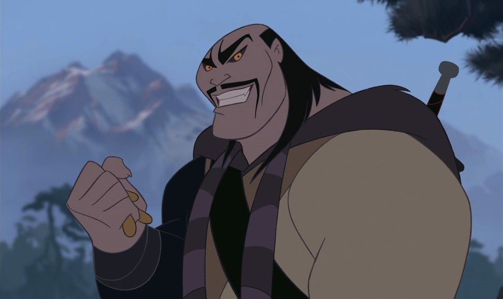 The film’s villain Shan-Yu is a two-dimensional bad guy but is still quite entertaining from how overtly evil he and his falcon companion are, with Shan-Yu himself being complete with fangs and muted colours. I also love how his scenes end with him delivering a spine chilling message (“How many men does it take to deliver a message?” – oh, badass!). He’s not the main source of conflict in the film so his two-dimensional personality doesn’t interfere with the film. However, he does display one revealing character moment during the film’s climax in which upon discovering Mulan was the solider from the battlefield who took out his army, in an ironic twist he is the only character in the film who does not belittle Mulan for being a woman.