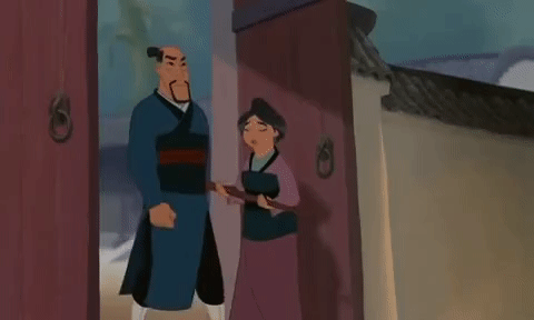 Mulan’s world is populated with many great characters from the badass, no-nonsense general and love interest to Mulan, Li Shang (those abs are body goals) of whom it turns out is a bit socially awkward when it comes to women. Mulan’s dignified father Fa Zhou on the other hand is best summed up in the powerful shot of his attempt to walk without his aid and disguise his limp to accept his conscription assignment. Although absent for most of the film, he is at the film’s heart as the instigator of Mulan’s journey (“I know my place! It is time you learned yours!”). The question does have to be raised if the military would actually have this old, physically weak man on the battlefield but rather to act as a general due to the fact that he appears to be a well-known figure at the boot camp and thus likely respected and held in high esteem. I do also adore the trio of soldiers – the fiery voiced Yao (thank you Harvey Feinstein), the childlike Ling and the pacifist Chein with their camaraderie and failure to act like tough guys and lady killers. Then there is the slimy pencil pusher Chi-Fu, the film’s love to hate character. I like how he is given some humanising moments like his picture with the Emperor on his desk and his claim that he apparently has “a girl back home who’s not like any other”. Even The Emperor of China himself is full of wisdom and memorable quotations worthy of Confucius himself.