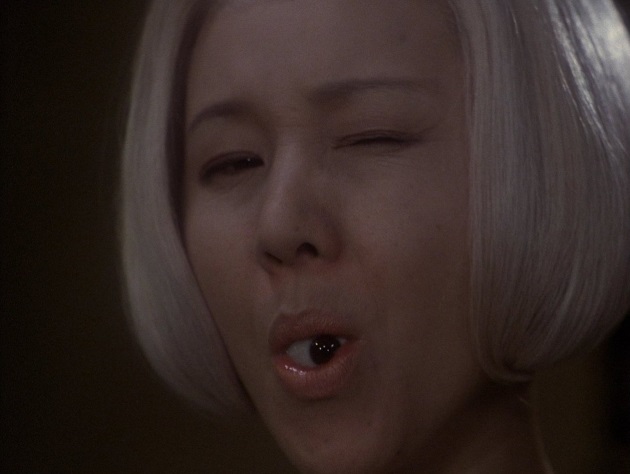 Of the various interpretations of House, that which strikes me the most is the film being a coming-of-age tale of Gorgeous’ urge to stay a young woman and refusal to enter womanhood. As the house eats the young girls, blood erupts from it, the blood of menstruation – a symbol of womanhood triumphing over youth. It’s also worth noting the blood in question comes from the cat, an alternative name for a cat is a…, ok you know what I mean. Likewise, when people are young they will have certain friends and as they become older they may move on from these friends as a result of maturity. Gorgeous’ dying friends can be seen to represent this while her stepmother going up in flames in the film’s final scene could be viewed as her lack of need for a mother figure in adulthood. I have read theories bringing this theory to greater extremes of analyses, in particular, an extensive write-up on the now defunct (but thankfully archived) IMDB boards in which a user by the name of nemuro8 proposes the seven girls all represent aspects of puberty (I’m not sure if I buy into it but it’s food for thought); “Fantasy represents naivety and the fear of the change. Mac represents hormonal changes with her increased appetite. Sweet represents the desire to fill expectations and the role of domestic life. Melody represents creativity and the desire to have fun. Kung-Fu represents courage and brashness. Prof represents logic and leadership. Gorgeous represents vanity and beauty.”