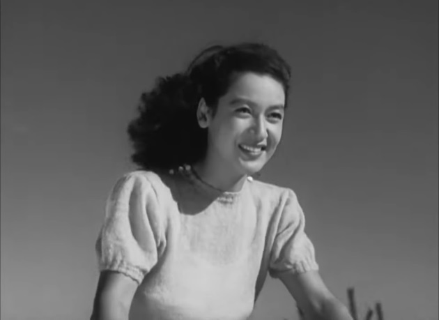 The scene in which Noriko and Hattori (Jun Usami) go for a recreational cycle by the seaside is the cinematic encapsulation for the joy of living. A scene bustling with freedom and a lust for life with the sight of a smiling Setsuko Hara with her hair blowing in the wind alongside the quirky, upbeat music which accompanies the scene should be in the pantheon of cinema’s most iconic moments. It also contains the unexpected but memorable inclusion of a Coca-Cola sign featured prominently in the foreground – one of the most memorable pieces of product placement I’ve seen in a film. This sign along with another road sign in English warning that the weight capacity of the bridge the duo are riding over is 30 tons (irrelevant information for the two cyclists but necessary for any military vehicles to pass over) could be interpreted as signs to the otherwise unseen US occupation. Concurrently, I believe it’s not unreasonable to assume that Aya’s (Yumeji Tsukioka) ex-husband of whom she speaks of throughout the course of the film is a US serviceman. Aya refers to him by the name “Ken”, which Shukichi assumes is short for “Kenkichi” however Aya never corrects him. The other significant clue is Aya’s difficulty in sitting in a traditional Japanese manner without her legs getting numb, suggesting she has become more used to the western manner of sitting.